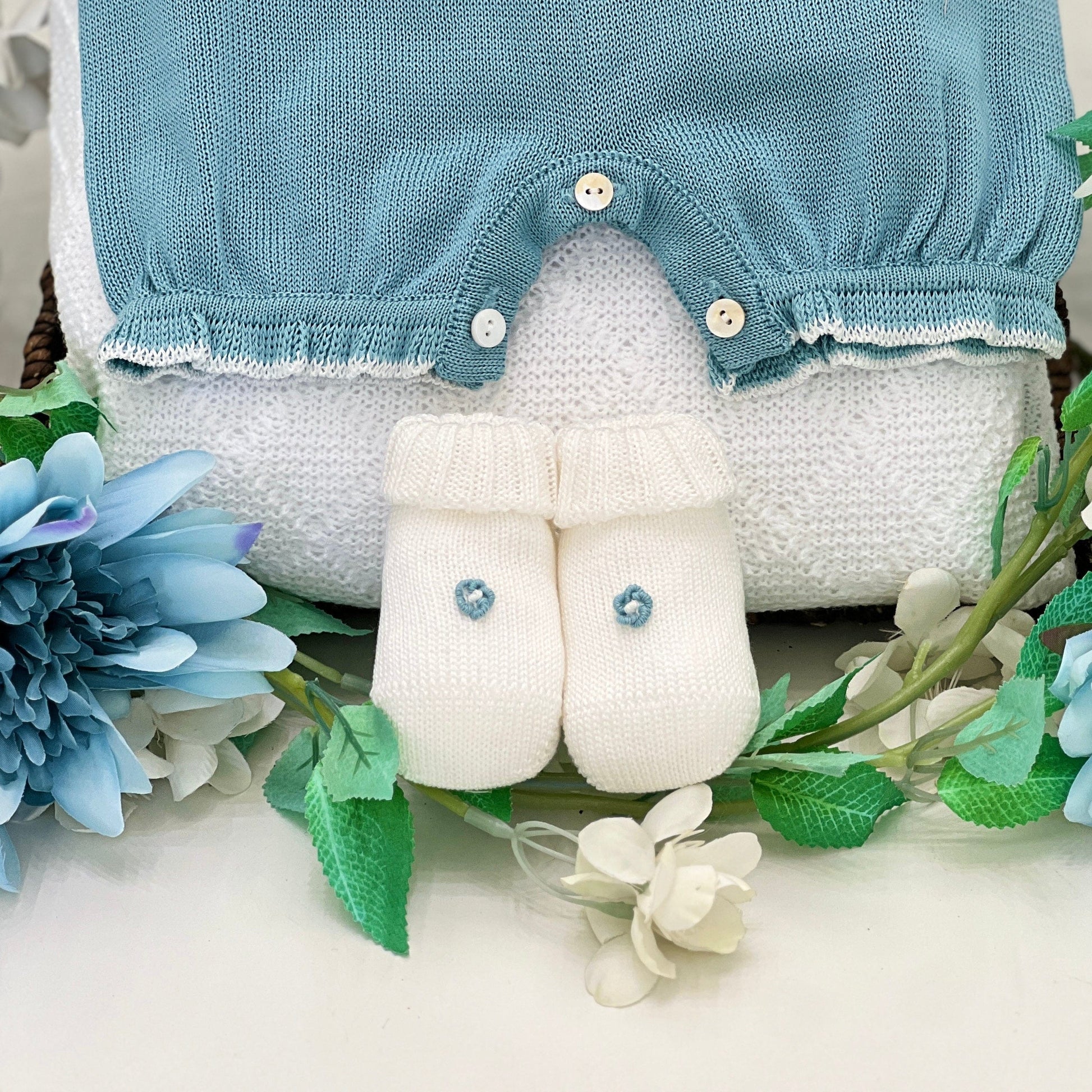 Corpetto traforato, dettaglio con fiori provenzali, colletto con rouche con bordino, abbinato al completo babbucce in filo di cotone con fiori in punto a vapore. Un capolavoro di ricamo ed artigianalità per avvolgere la tua bimba in stile e delicatezza in un design raffinato, poetico e senza tempo.