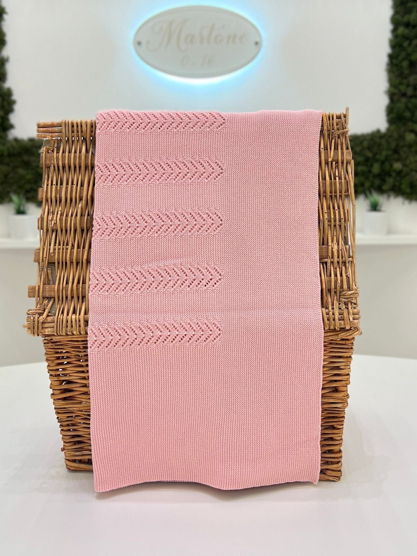 Coperta neonata in filo di cotone con trama ricamata con trafori.