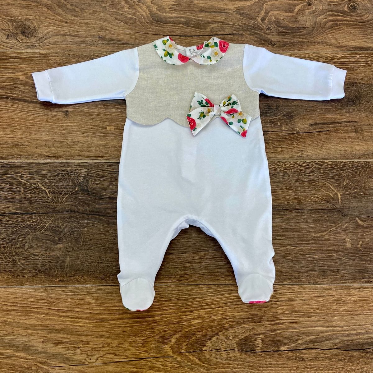 Tutina intera con dettagli floreali.