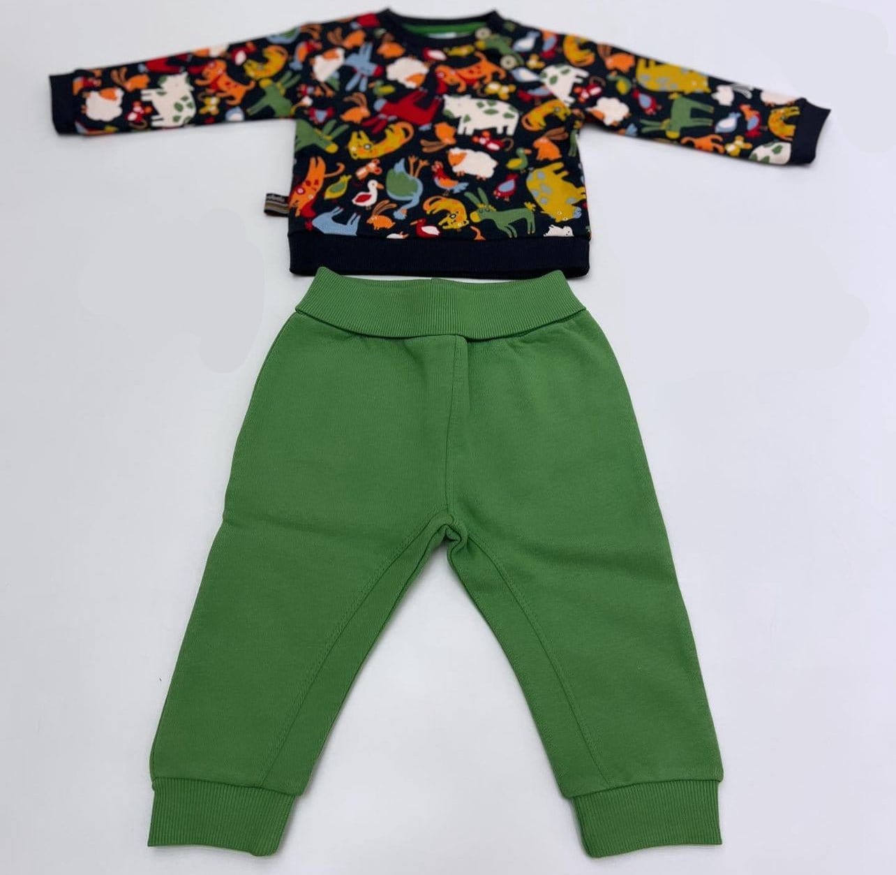 Completo in tuta felpata bimbo con stampa animali sulla maglia.