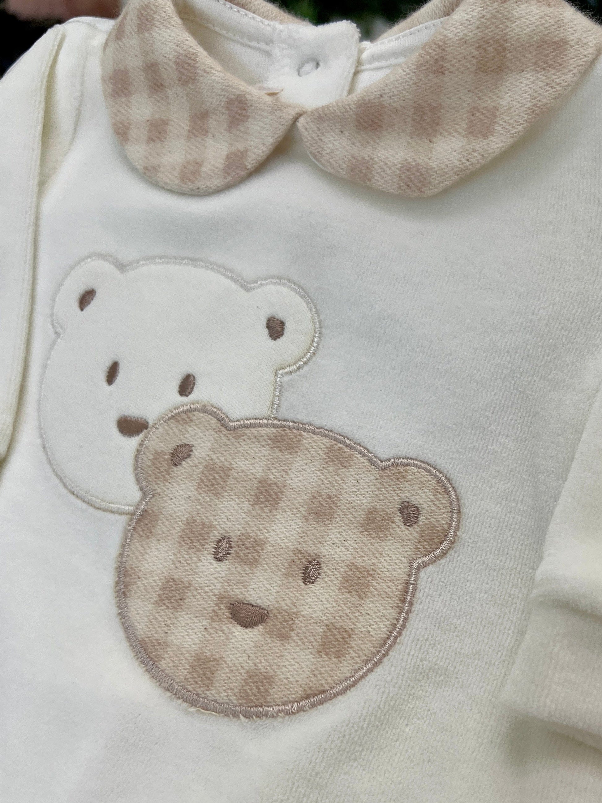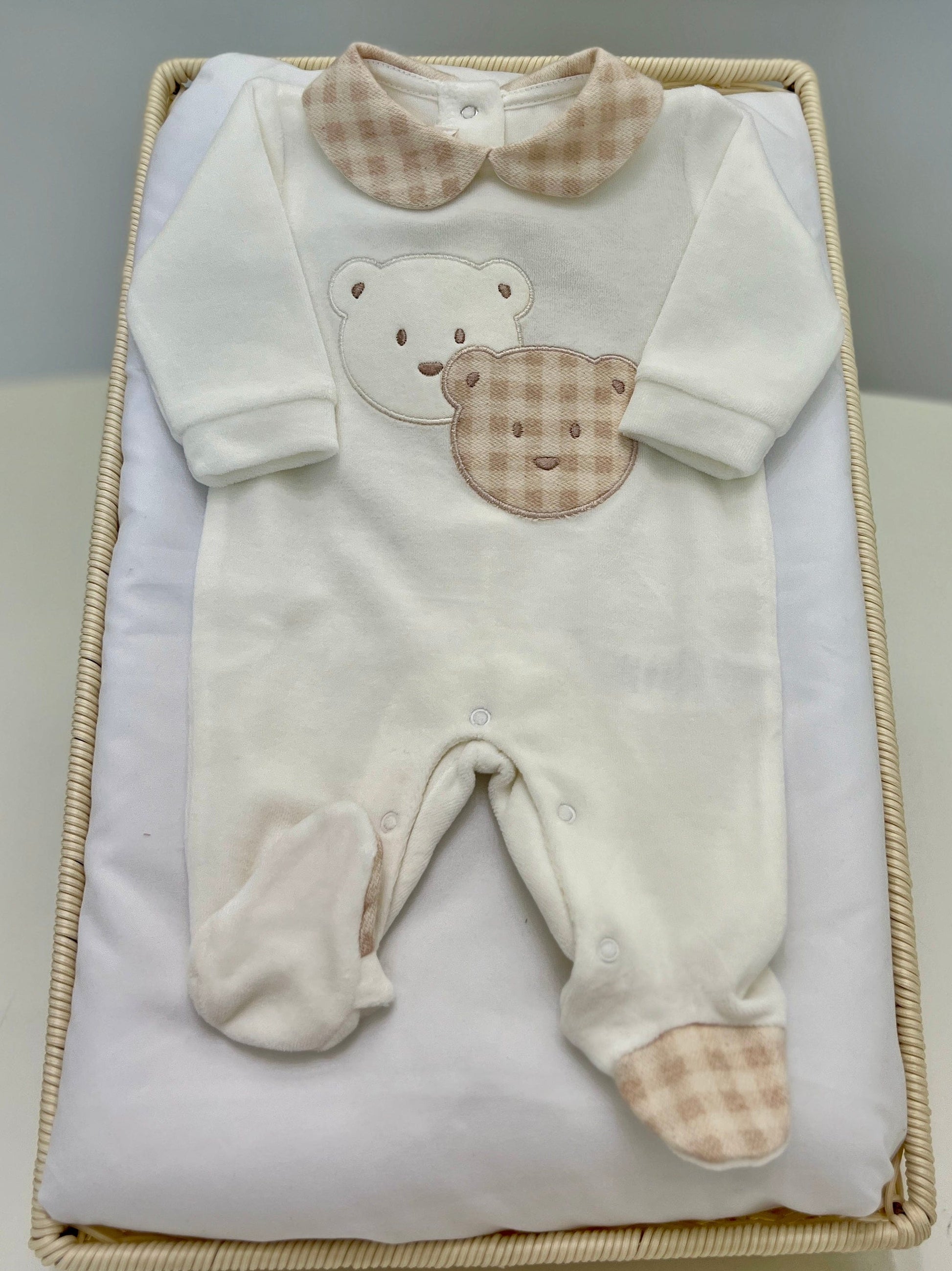Questa tutina intera in ciniglia è l'ideale per offrire al tuo neonato il massimo comfort e calore. Realizzata in un tessuto morbido e avvolgente, presenta un design pratico con abbottonatura sul retro e sul cavallo, facilitando il cambio del pannolino e la vestizione. Perfetta per ogni occasione, questa tutina combina funzionalità e stile, garantendo che il tuo piccolo sia sempre comodo e alla moda.